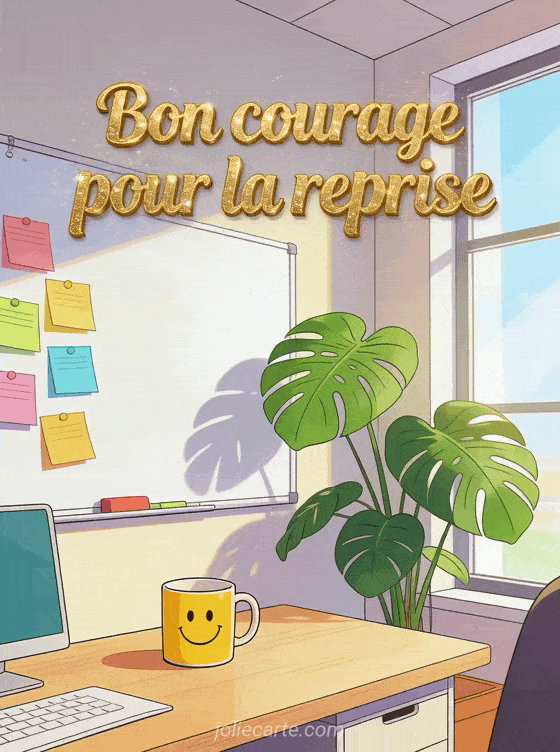 Partagez une image de bon courage pour la reprise et montrez votre soutien à vos proches qui reprennent le travail. Découvrez aussi un bon courage pour ta semaine, un bon courage aux travailleurs ou un bon courage au boulot avec humour.