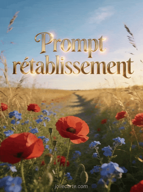 Partagez cette carte lumineuse pour souhaiter courage et bon rétablissement après une opération. Des coquelicots et un message d'espoir pour accompagner la guérison, à voir aussi avec une carte hôpital courage, pour souhaiter courage ou un courage humour.