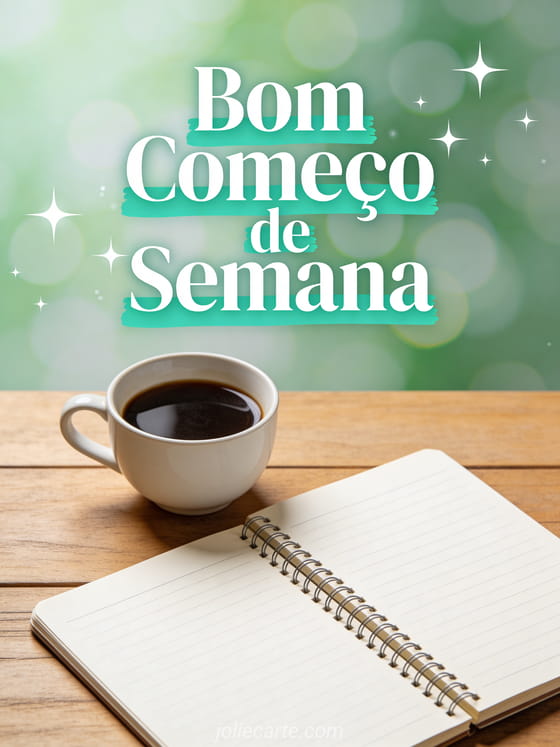 Comece a semana com energia positiva enviando este cartão motivador Bom Começo de Semana com uma mesa aconchegante e café fresco. Descubra também um cartão segunda gif, um cartão boa segunda ou um cartão segunda ensolarada.