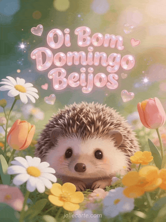 Envie uma adorável saudação de bom domingo com beijos usando este encantador cartão. Um lindo ouriço entre flores da primavera em uma atmosfera calorosa e terna, perfeito para alegrar o domingo de alguém.