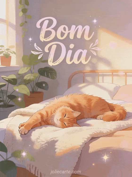 Comece a manhã de alguém com carinho com este adorável cartão de bom dia. Um fofo gato laranja se espreguiça preguiçosamente em uma manta aconchegante, com a luz quente da manhã criando sombras suaves em um quarto tranquilo. Descubra também um cartão de bom dia engraçado.