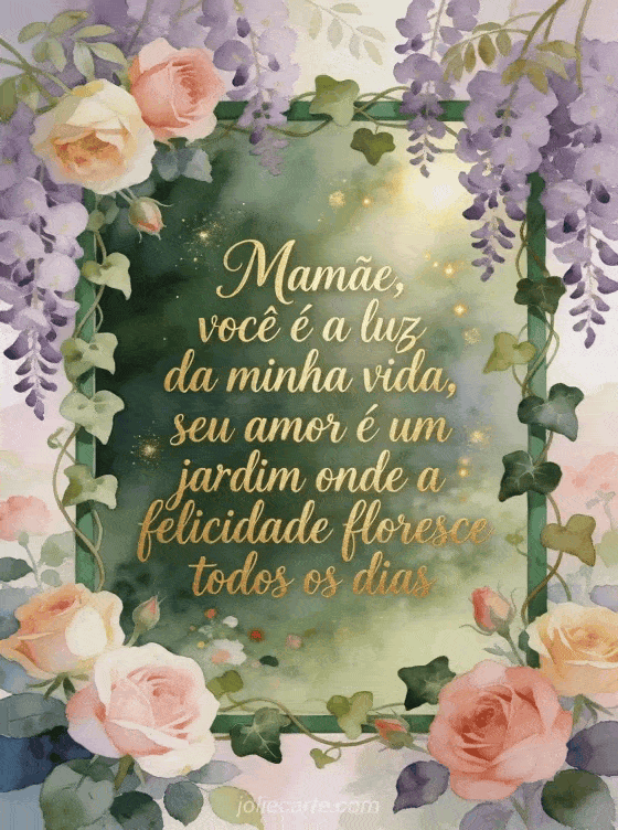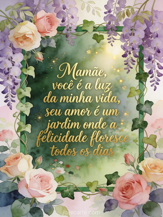 Diga à sua mãe que ela é a luz da sua vida com este cartão carinhoso para o dia das mães. Seu amor é um jardim onde a felicidade floresce todos os dias. Descubra também um cartão com palavras doces para o dia das mães.