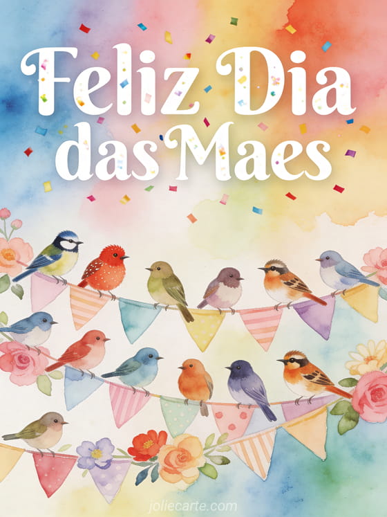 Feliz Dia das Maes um alegre e festivo cartão para o dia das mães