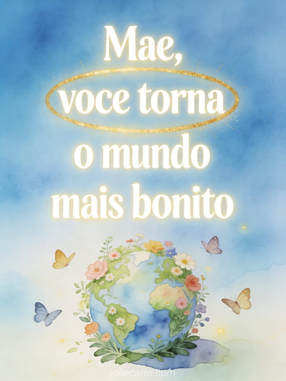 Diga à sua mãe que ela torna o mundo mais bonito com este poético e terno cartão. Descubra também um cartão dia das mães PS, um alegre cartão dia das mães ou uma imagem feliz dia das mães grátis.