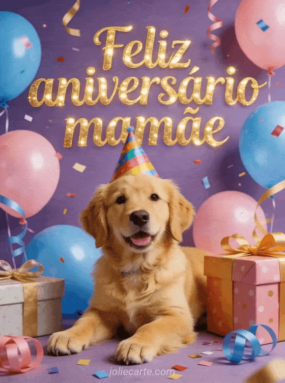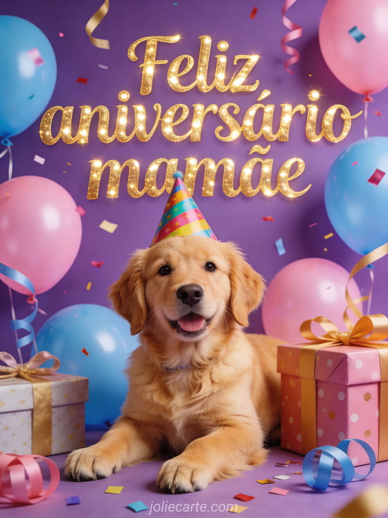 Feliz aniversário mamãe uma alegre celebração de aniversário com um adoravel golden retriever