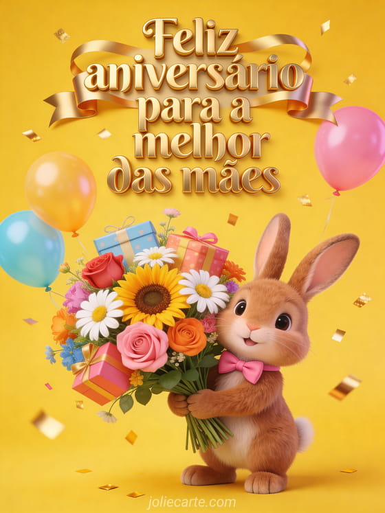Envie um alegre feliz aniversário para a melhor das mães e torne o dia dela verdadeiramente especial. Celebre-a com flores e amor. Descubra também um cartão feliz aniversário mamãe, um desenho feliz aniversário mamãe ou um texto de aniversário para mamãe.