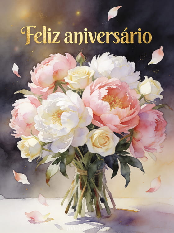 Envie um caloroso e elegante feliz aniversário para alegrar o dia especial de alguém com este lindo cartão floral. Descubra também um cartão de aniversário animado grátis para ela, um cartão aniversário doce com pug ou um cartão aniversário floral.
