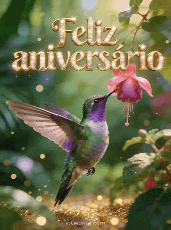 Envie um delicado e luminoso feliz aniversário com um belo beija-flor para tornar o seu dia especial. Descubra também um gif aniversário mulher grátis, um gif feliz aniversário mulher humor ou um gif animado aniversário mulher.
