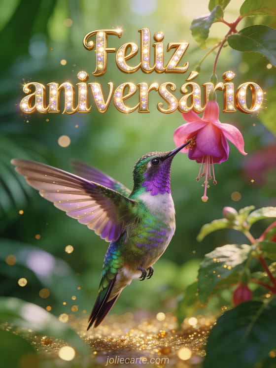 Cartão feliz aniversário grátis com beija-flor