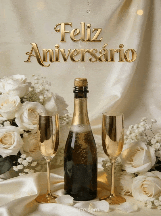Feliz Aniversário uma elegante celebração de aniversário com champanhe e rosas
