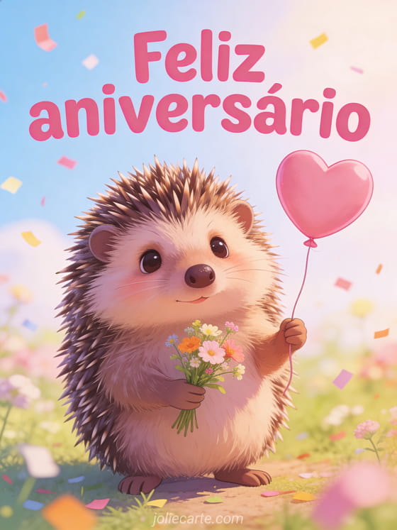 Cartão feliz aniversário grátis com ouriço