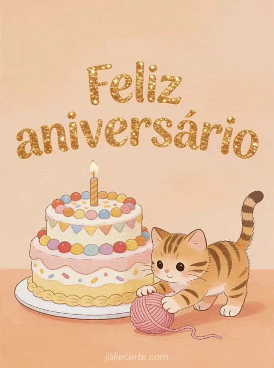 Envie um doce e divertido feliz aniversário com um adorável gatinho malhado para alegrar o seu dia. Descubra também um gif feliz aniversário mulher humor, um gif animado aniversário mulher ou um gif animado feliz aniversário mulher.