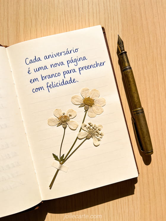 Cada aniversário é uma nova página em branco para preencher com felicidade um desejo poético de aniversário cheio de esperança