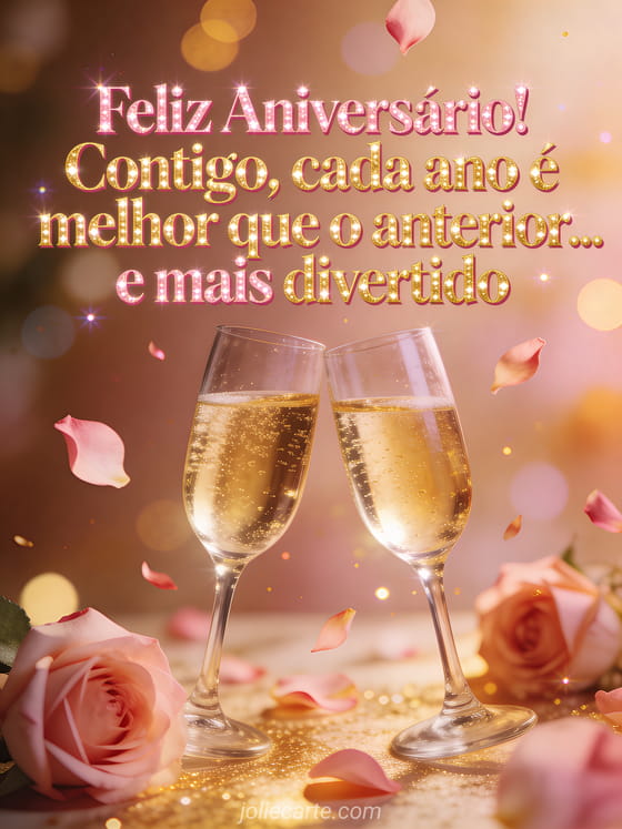 Feliz Aniversário! Contigo, cada ano é melhor e mais divertido um desejo de aniversário elegante e divertido