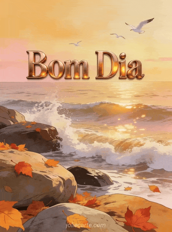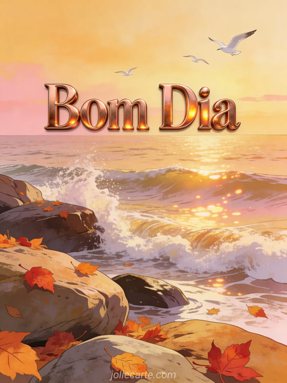 Envie um caloroso Bom Dia com uma bela beira-mar outonal, luz acobreada e folhas vermelhas nas rochas. Descubra também um cartao Bom Dia casal ou um cartao Bom Dia flores.