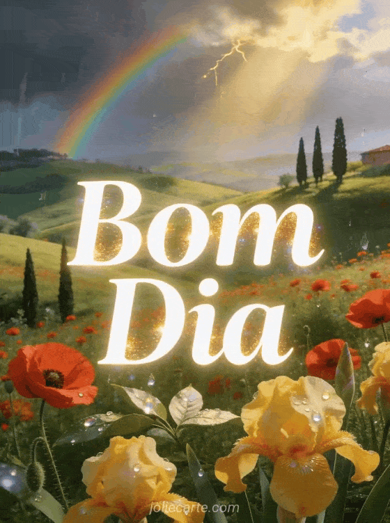 Envie um caloroso Bom Dia com uma bela paisagem toscana de colinas verdes, papoulas vermelhas e um arco-íris. Descubra também um cartao bom dia com beijos ou um cartao animado bom dia divertido.