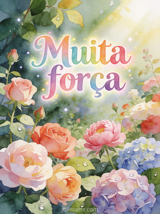 Envie este lindo cartao de coragem com um jardim em plena floracao com rosas, peonias e hortensias para alegrar o dia de alguem. Descubra tambem um cartao de coragem inspirador ou um cartao de coragem com coracoes ou um cartao de coragem.