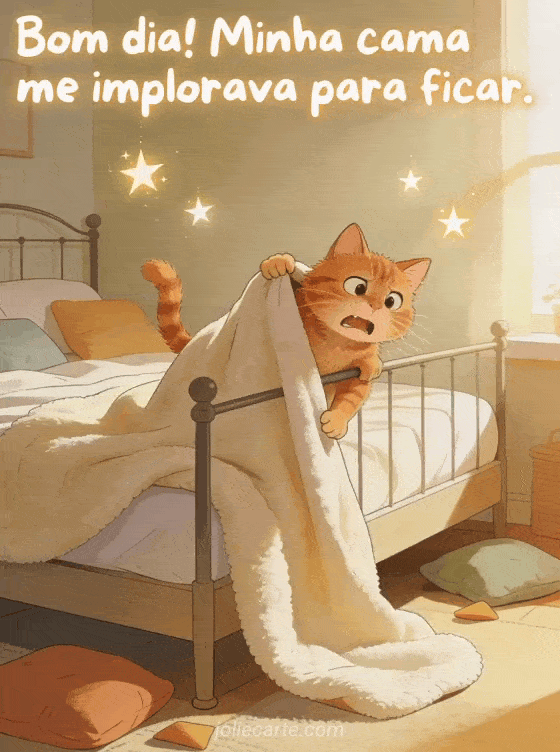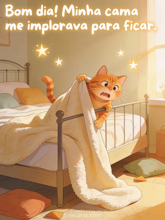 Bom dia! Minha cama me implorava para ficar uma saudação matinal divertida para amantes da cama