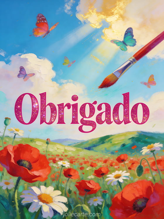 Expresse sua gratidão com este alegre cartão que mostra uma campina ensolarada de verão com papoulas e margaridas. Uma calorosa e alegre ilustração para dizer obrigado. Descubra também um cartão obrigado aos dois ou um cartão obrigado pela atenção.