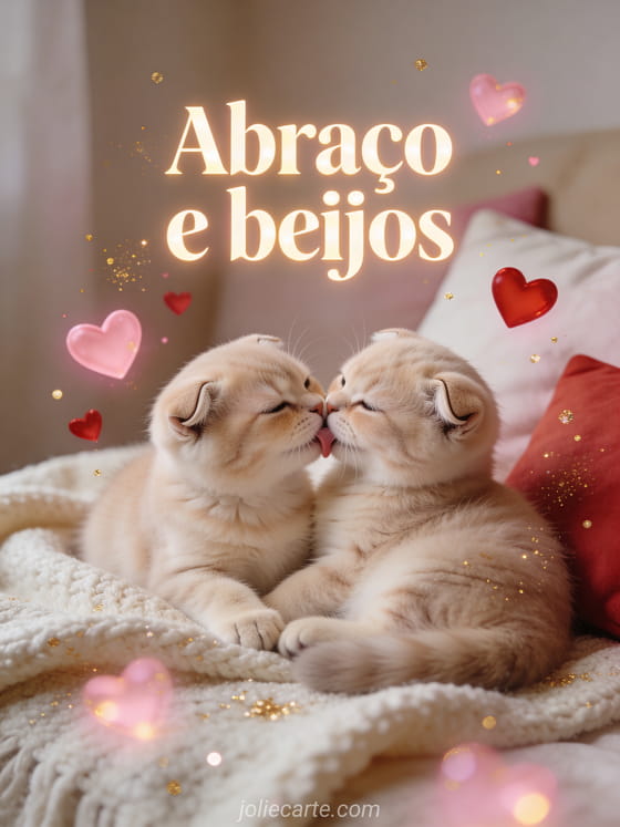 Compartilhe um doce abraço e beijos com seu parceiro com este adorável cartão. Veja também beijos apaixonados imagens, beijos meu amor gif ou foto de amor beijos.
