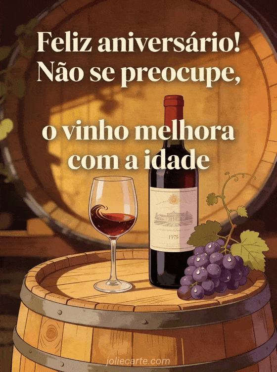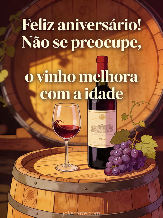 Feliz aniversário! Não se preocupe, o vinho melhora com a idade um brinde de aniversário divertido com clima de vinho especial