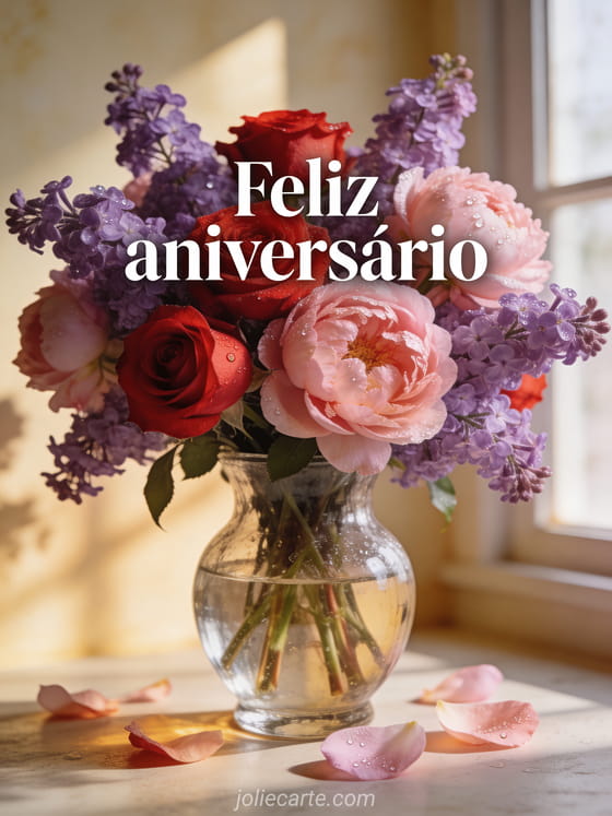 Celebre o dia especial dela com um lindo cartão de aniversário decorado com flores. Descubra também um cartão de aniversário divertido para mulher, um cartão de aniversário com flores para mulher ou um cartão de flores para aniversário de mulher.
