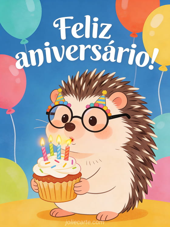 Arranque sorrisos com este cartão humorístico de aniversário com ouriço, balões e bolo. Você também pode ver cartão aniversário mulher praia, cartões aniversário mulher e imagens feliz aniversário mulher grátis.