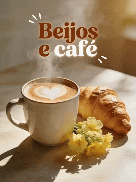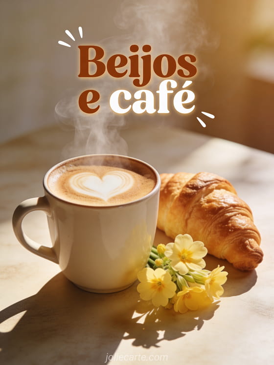 Compartilhe doces beijos e café com este encantador cartão matinal. Descubra também um cartão de enviar beijos ou um cartão de muitos beijos.