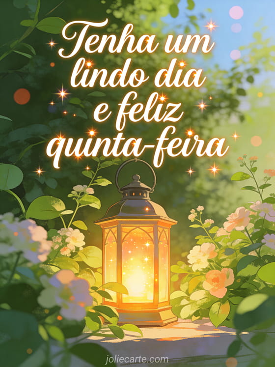 Compartilhe uma bela imagem de feliz quinta-feira com letra cursiva, uma lanterna luminosa entre a vegetação florida e um brilho quente. Você também pode enviar feliz quinta-feira quente imagem, boa quinta-feira imagens ou uma feliz quinta-feira.