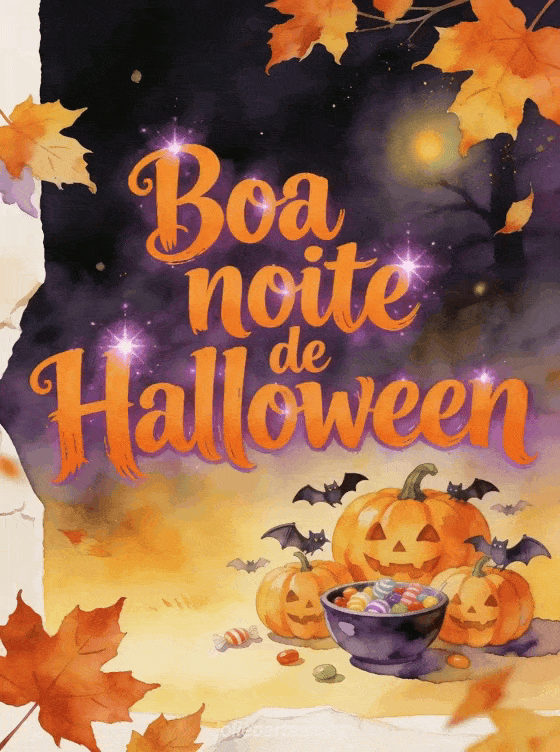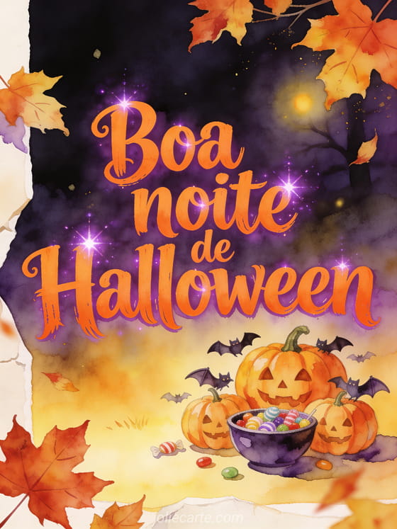 Compartilhe boa noite de Halloween com letras laranja-abóbora, abóboras alegres, pequenos morcegos em aquarela ao redor de uma tigela de doces e folhas de bordo cruzando a borda. Veja também pesquisa imagens boa noite, boa noite gato imagem ou boa noite flores gif animado.