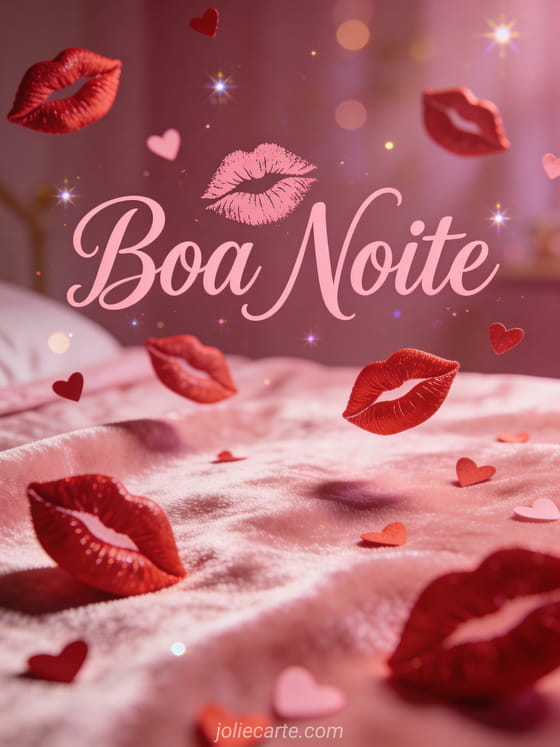 Envie uma doce imagem de boa noite com beijos para quem você ama com este romântico cartão grátis. Descubra também boa noite na lareira ou boa noite filhote.