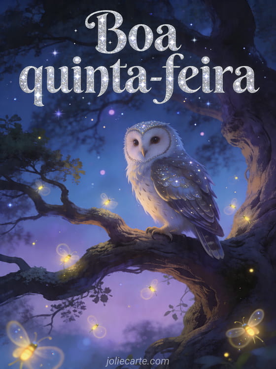 Compartilhe uma boa quinta-feira cheia de encanto da floresta com este cartão luminoso de coruja. Veja também boa quinta-feira imagens, boa quinta-feira ensolarada ou boa noite de quinta-feira.