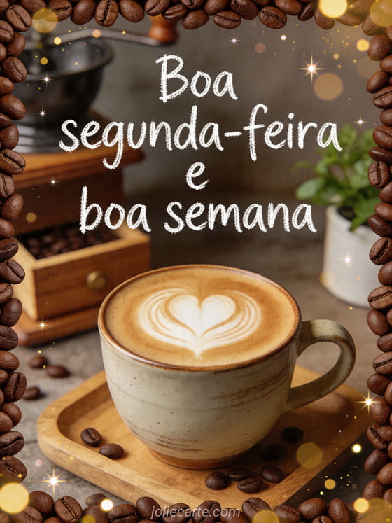 Compartilhe um cartão de Boa segunda-feira com latte art em uma xícara de cerâmica para iniciar a semana com aconchego. Veja também boa semana boa segunda-feira, boa segunda-feira e boa semana gif e boa segunda-feira citação.