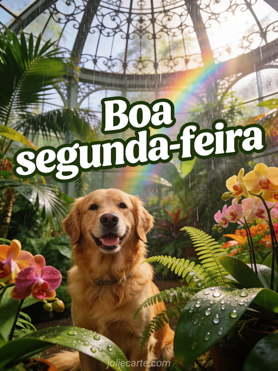 Comece a semana com alegria e envie este lindo cartão de segunda-feira com um cachorro feliz. Descubra também um cartão de boa segunda-feira engraçado ou um cartão de carinho boa segunda-feira beijos.