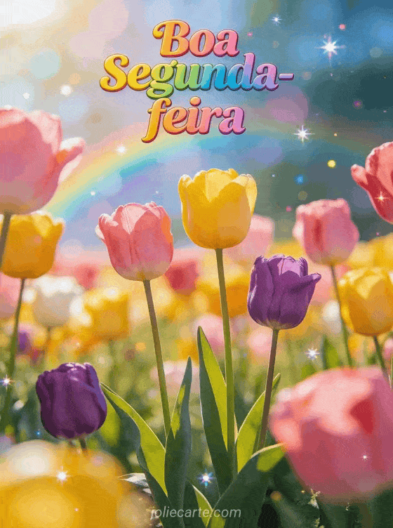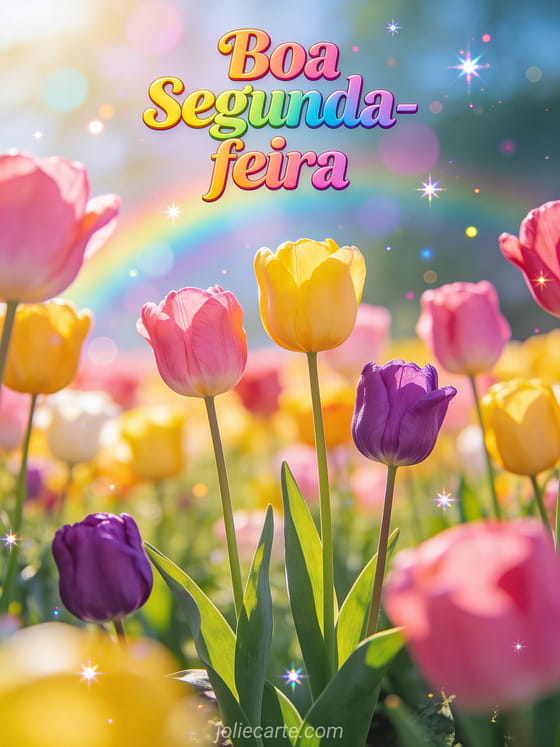 Compartilhe uma vibrante saudação de segunda-feira com coloridas tulipas em plena floração. Confira também um boa segunda-feira boa semana beijos ou um boa segunda-feira e boa semana humor.