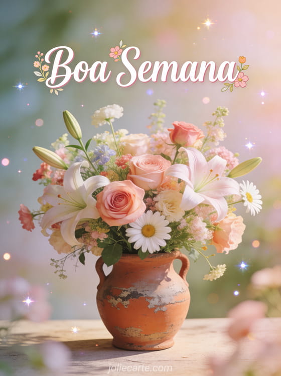 Compartilhe uma linda boa semana flores para desejar uma semana vibrante e cheia de alegria. Descubra também gif boa semana humor ou boa semana bom dia.