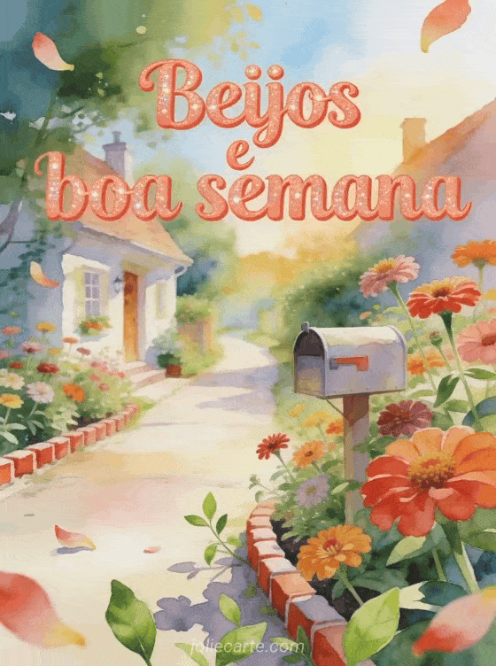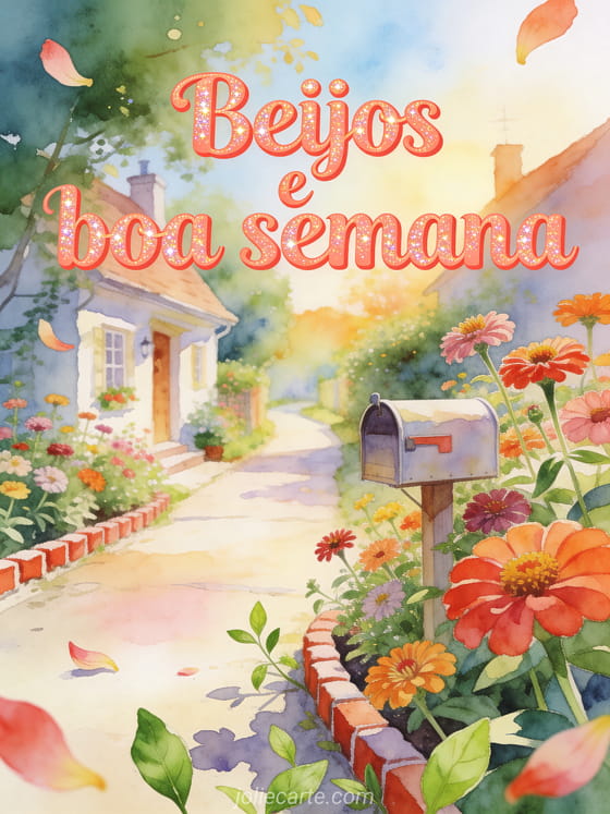 Envie um cartão gif de boa semana com uma vereda, uma caixa de correio e zínias brilhantes na luz quente da manhã. Descubra também um boa semana para você também beijos, um boa semana muitos beijos ou beijos para a semana toda.