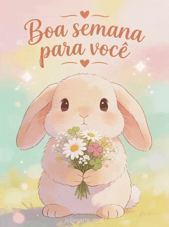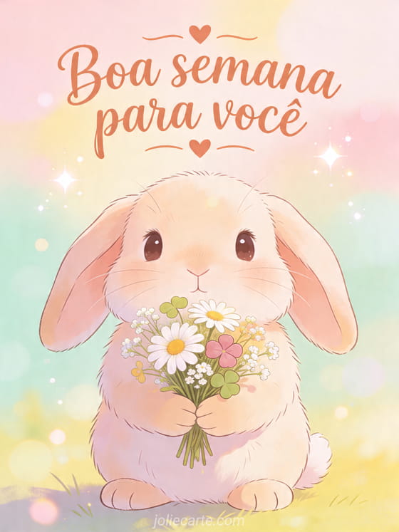 Compartilhe um desejo carinhoso de boa semana com este adorável cartão de coelho. Veja também boa semana beijos, imagens boa semana ou boa semana.