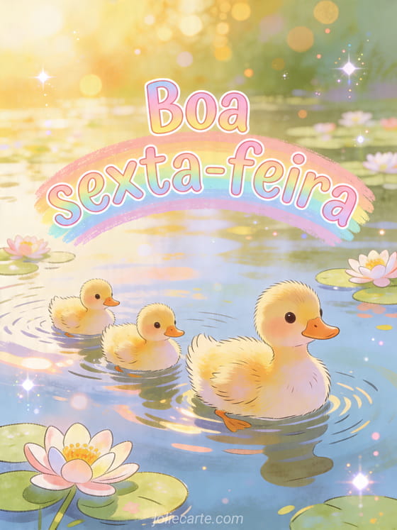 Compartilhe uma boa sexta-feira cartão grátis cheia de ternura com esta linda cena de patinhos. Veja também olá boa sexta-feira café, sms boa sexta-feira e bom fim de semana ou boa noite de sexta-feira.