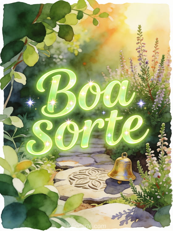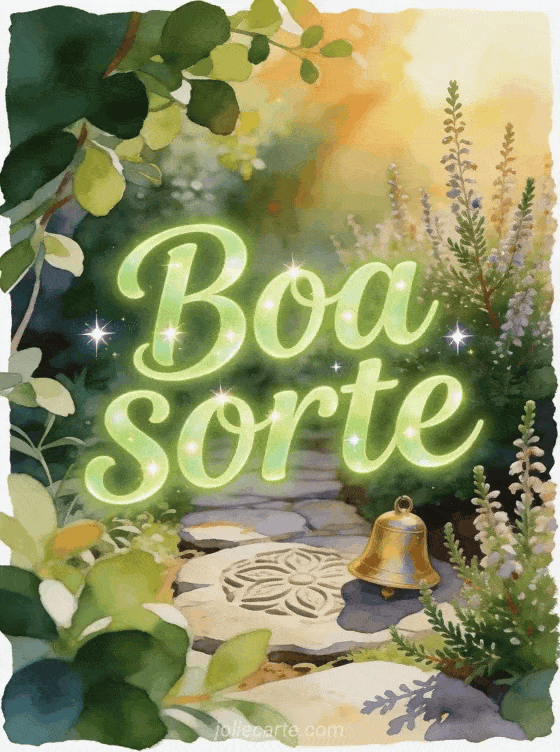 Compartilhe um cartão luminoso de boa sorte com um caminho de jardim entalhado, um pequeno sino dourado, ramos de urze e luz quente do sol. Você também pode enviar e então acima de tudo boa sorte gif, uma imagem animada boa sorte ou boa sorte a todos imagem.