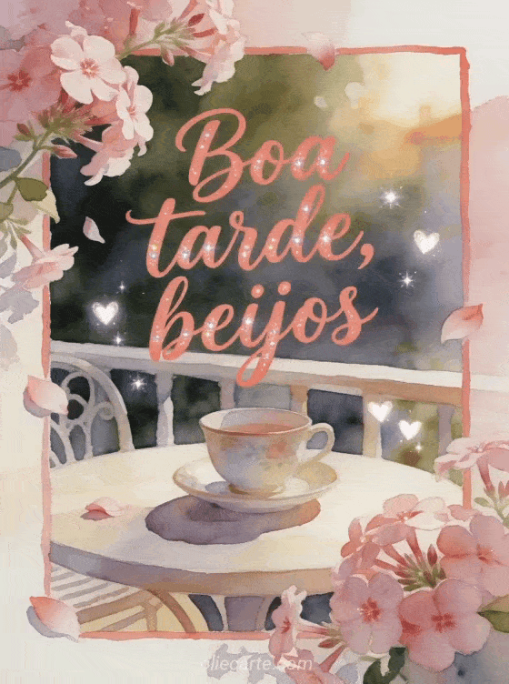 Deixe a tarde mais bonita com um cartão em aquarela de letras coral, pétalas de phlox e uma xícara em um terraço aconchegante. Você também pode enviar uma imagem linda tarde beijos, beijos da tarde ou obrigado boa tarde.