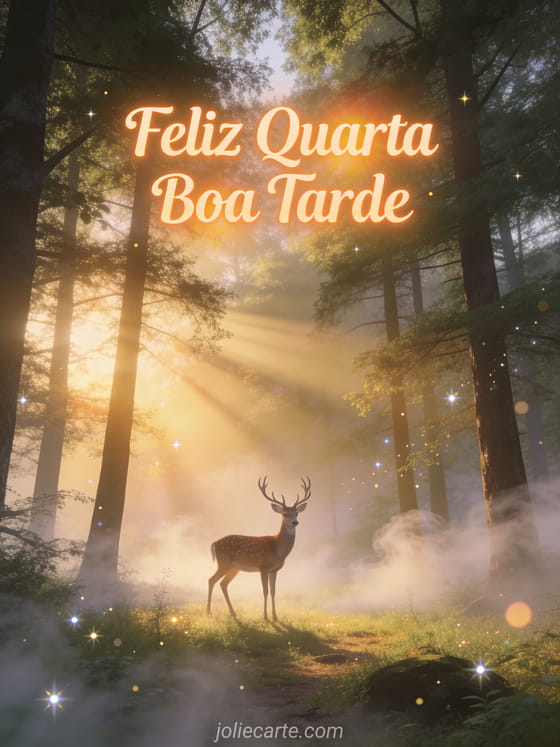 Compartilhe um caloroso desejo de feliz quarta-feira com este encantador cartão com um majestoso cervo na floresta. Descubra também imagens beijos da quarta-feira ou bom dia boa quarta-feira café para mais inspiração no meio da semana.