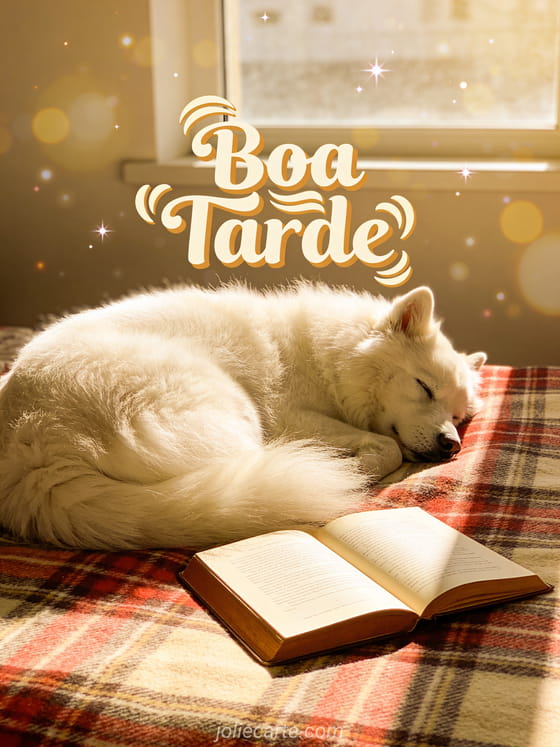 Compartilhe um gif animado de boa tarde com esta adorável cena de cachorro Samoieda dormindo. Descubra também boa tarde ou boa tarde gifs.