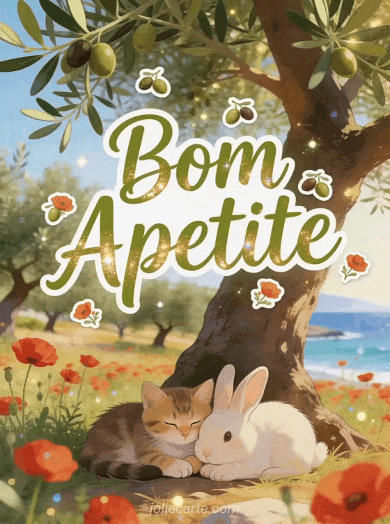Bom apetite gif animado uma saudação terno e alegre na hora da refeição