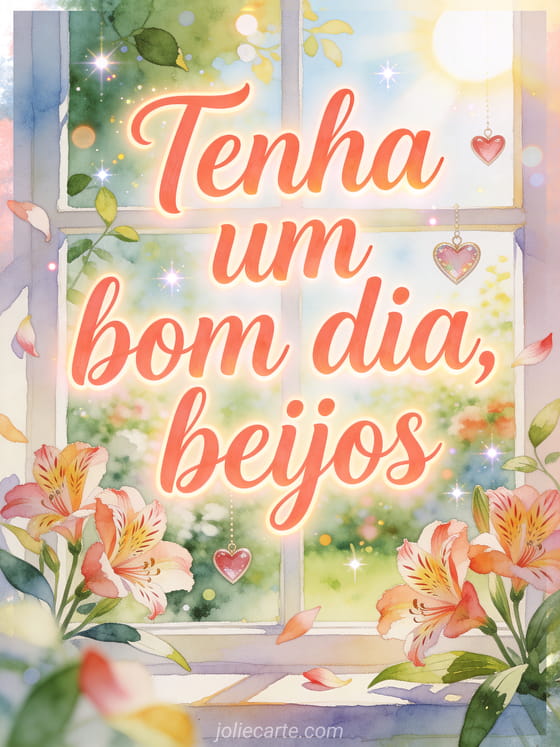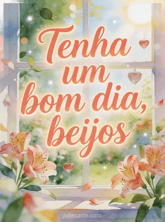 Compartilhe tenha um bom dia e beijos em uma janela de jardim luminosa em aquarela, com flores de alstroeméria, corações flutuantes e folhas ao sol. Você também pode compartilhar bom dia ótimo dia gif animado gif animado, bom dia também gif ou bom dia fada gif.