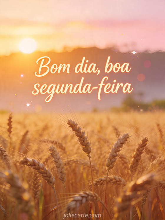 Compartilhe um cartão de Bom dia, boa segunda-feira com um campo de trigo dourado ao amanhecer para começar a semana com calma. Veja também boa segunda-feira imagem, boa segunda-feira engraçado e boa segunda-feira e boa semana.