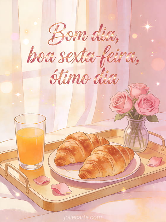 Envie um caloroso bom dia e boa sexta-feira com este cartão grátis e ilumine a manhã com um café da manhã elegante. Você também pode ver boa sexta-feira gato, bom dia é sexta-feira gif ou sexta-feira beijinhos gifs.