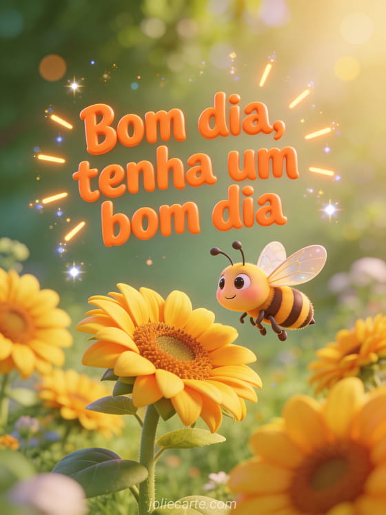 Compartilhe bom dia bom domingo e bom dia com letras laranja alegres, raios de sol, uma abelha fofa de desenho animado zumbindo entre girassóis amarelos e uma cena de jardim de verão. Veja também bom dia bom domingo e tenha um bom dia ou feliz domingo frio imagens.
