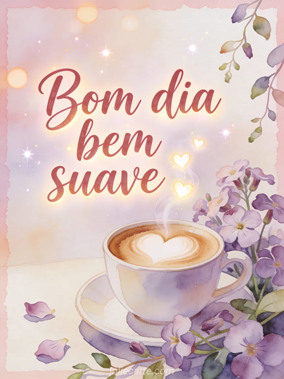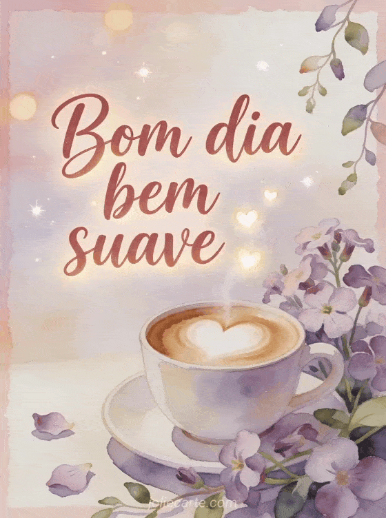 Compartilhe um bom dia delicado com uma xícara de latte, espuma em forma de coração, flores de aubrieta e corações luminosos subindo do vapor. Você também pode enviar uma bom dia café mensagem, uma imagem de bom dia bom café ou um bom dia gif animado café fumegante.