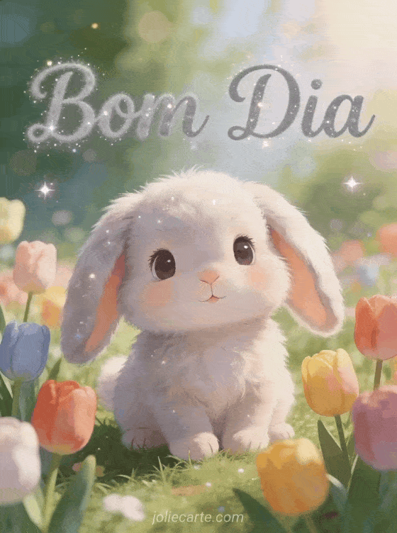 Alegre o dia de alguém com este fofo cartão de coelho e tulipas. Descubra também um cartão ensolarado gif bom dia ou um cartão bom dia tenha um bom dia.